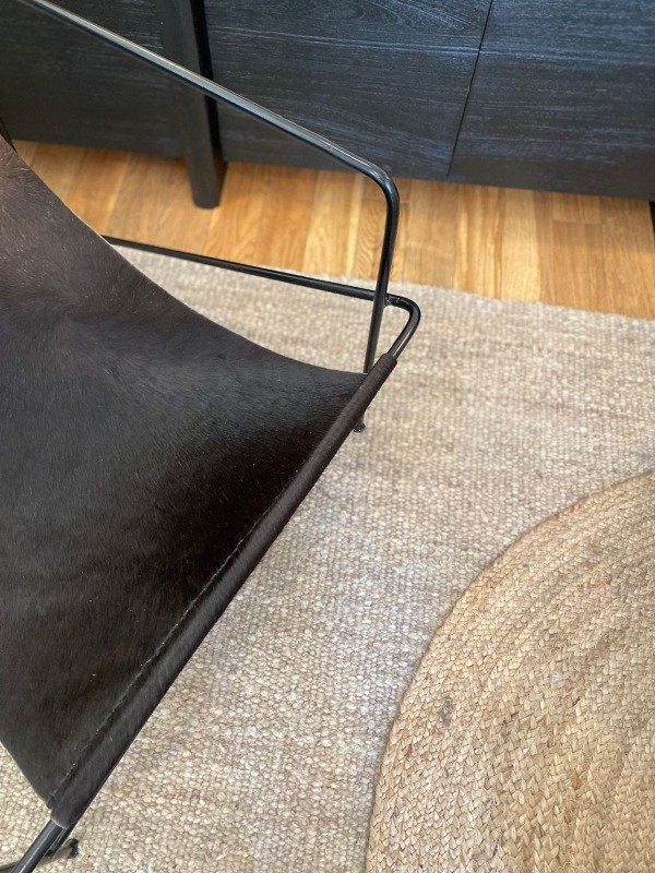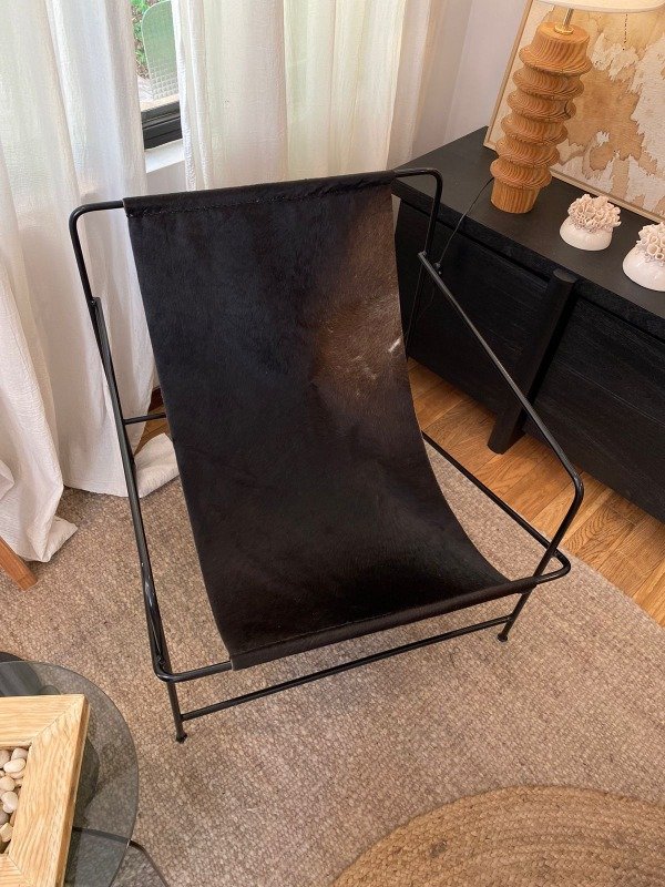 Sillón con estructura de hierro macizo y asiento de cuero con piel.