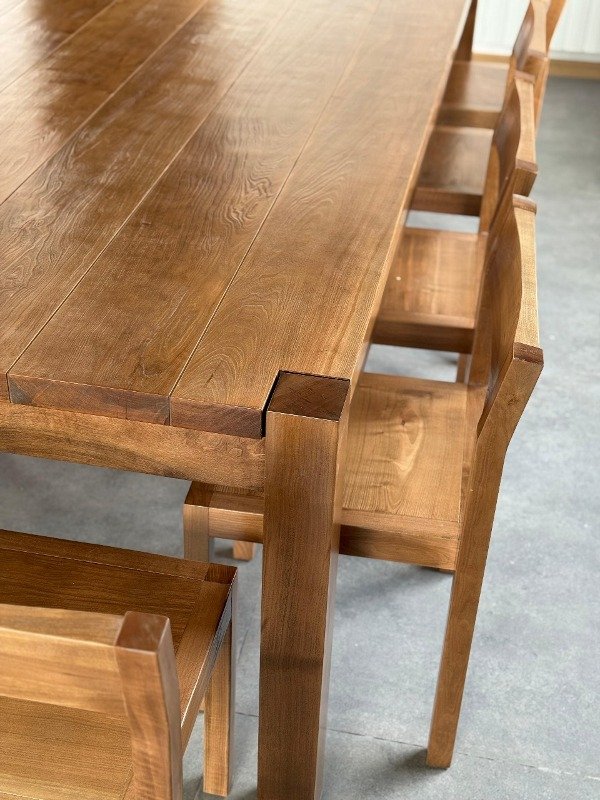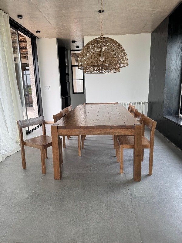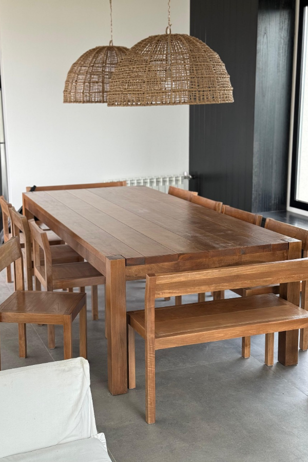 Mesa fabricada en madera de Lenga maciza arenada, para marcar la veta. Puede ser en color natural o con tinte.